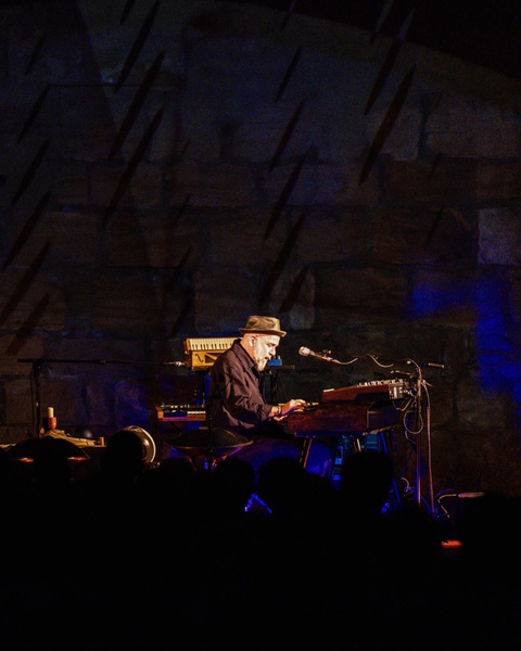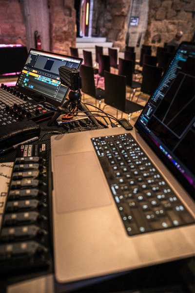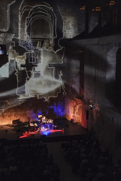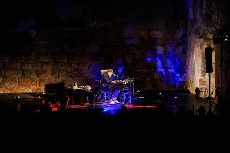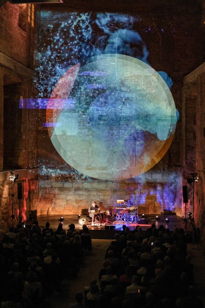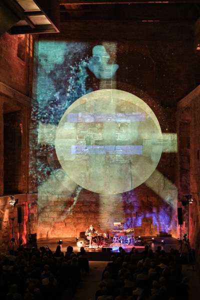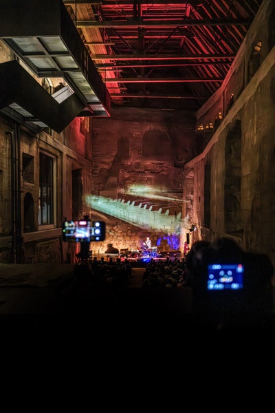 Es finden schon Veranstaltungen im Neuen Schloß statt. Ein Konzert in der Art war aber dann schon eine Premiere. Auch was die akustischen Gegebenheiten angeht, war man gespannt. Ursprünglich war geplant, im Sommer die Freiluftkulisse des Musicals „Mademoiselle Marie“ in der Vorburg zu nutzen. „Als der Martin dann aber die Bilder vom Schloss gesehen hat, stand für ihn fest: unbedingt da drin soll es sein“, so Losert. Der Multiinstrumentalist ist ja nicht nur bekannt für seine herausragenden Konzertereignisse, u. a. auch mit Werner Schmidbauer, bei denen er Klangteppich um Klangteppich übereinander legt und miteinander verwebt. Auch die Besonderheit von Orten hat es ihm angetan. So fand etwa sein Geburtstagskonzert 2022 in der Nürnberger Katharinenruine statt. Wie schon damals wurde auch diesmal mit Videokünstler Gene Aichner, einem weiteren langjährigen Wegbegleiter, ein visuelles Konzept für die lichttechnische Einbeziehung des Raumes erarbeitet.