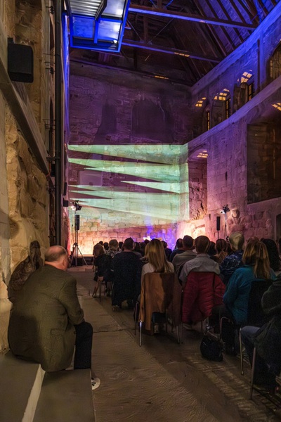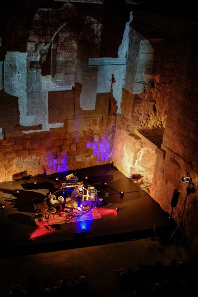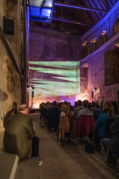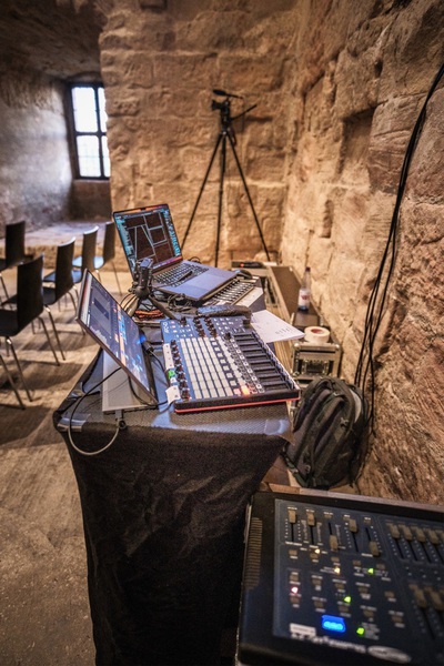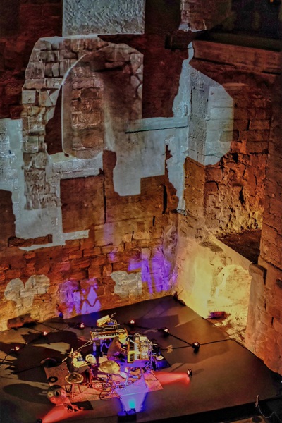 Auf die Bühne gebracht hat Kälberer sein Solo-Projekt „Resonance“. Resonanz, das bedeutet Nachklang, oder Widerhall, der hier in der Burg in einem historischen Gebäude von besonderer Bedeutung stattfand. Begrüßt durch Andreas Losert und Cadolzburgs Erster Bürgermeisterin Sarah Höfler fand ein Einstieg in Klangräume und Klangwelten statt und ließ bei den Besuchern an diesem Abend Kopfkino entstehen.