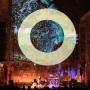 Mit einem Instrument geht es los, dem weitere folgen. Mit einem Hang genannten Percussionsinstrument (Schweizerdeutsch für Hand) wird ein akustischer Hintergrund gelegt, der über einen Sampler wiederholt abgespielt wird. Wobei Martin Kälberer mit weiteren Instrumenten Klänge darüber legt. Und so tauchen die Menschen im Neuen Schloss nach und nach mit der Bildinstallation Gene Aichners in ein Meer aus Licht und Sound und werden davongetragen. Scheinbar grenzenlos. „Kein Wort, kein Gesang. Nur Klang.“ Eine Idee, umgesetzt in Töne und Licht.